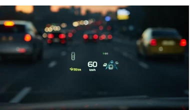 Проекционный дисплей позволяет водителю следить за ключевыми показателями автомобиля, такими как скорость движения, состояние круиз-контроля, мониторинг слепых зон и знаки ограничения скорости, не отрывая взгляд от дороги.