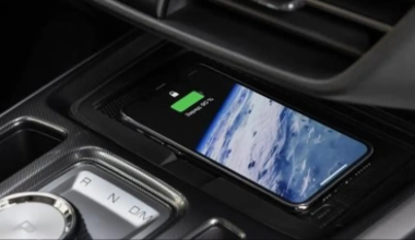 Зарядка удобно располагается посередине центральной консоли. Смартфон надежно зафиксирован, даже в случае резких маневров.
